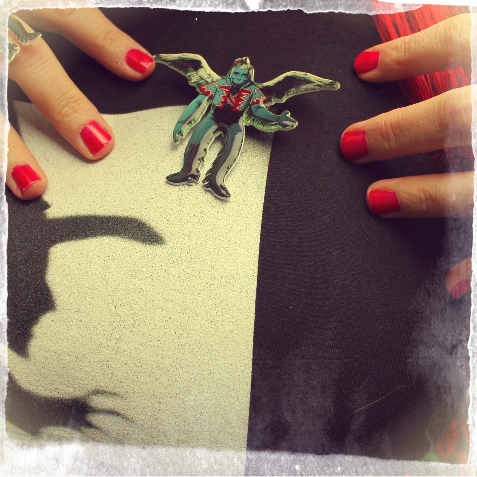 For a skirt I wanted the classic black and white side shot of the wicked witch. I had a hard time finding exactly what I wanted so I created the shirt I wanted in RedBubble.